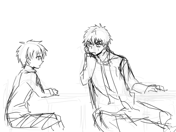 最初はこんな感じで隣の席ということで描きたかった